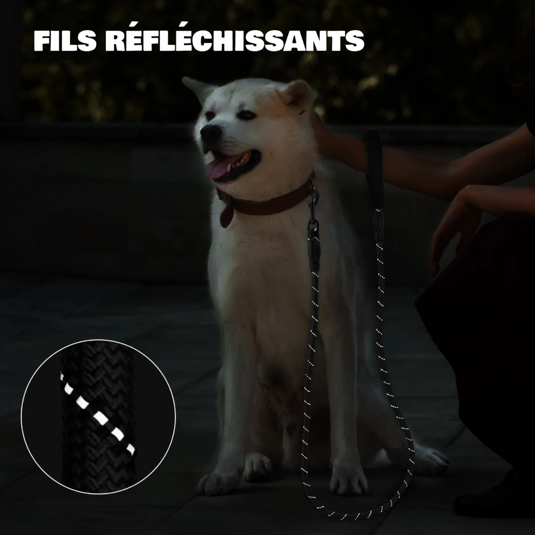 Oui, grâce à sa solidité et à sa poignée confortable, elle est idéale pour apprendre la marche en laisse et corriger en douceur les comportements de traction.